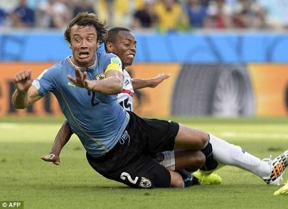 | Tình huống phạm lỗi của cầu thủ Costa Rica với Lugano của Uruguay |