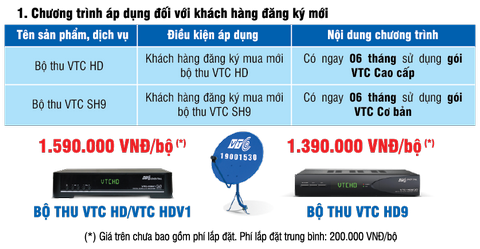 Cụ thể, khi Khách hàng đăng ký mới bộ thu VTC HD sẽ nhận được ngay 06 tháng thuê bao miễn phí gói kênh VTC Cao cấp.