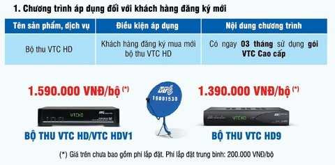 Trong đó, khi các khách hàng đăng ký mua mới bộ thu VTC HD sẽ được nhận ngay ưu đãi trải nghiệm 06 tháng miễn phí gói VTC cao cấp. Tính đến nay, VTC đã phát triển được nhiều thế hệ đầu thu HD lưu hành trên thị trường có tích hợp nhiều tính năng mới hỗ trợ người tiêu dùng kết nối các thiết bị ngoại vi và nhận được nhiều đóng góp tích cực của khách hàng từ mẫu mã, kiểu dáng, chất lượng sóng, tín hiệu cho đến mức giá cả phù hợp với mọi người tiêu dùng.