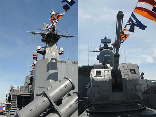 | Tên lửa Uran và pháo AK-176 trên tàu HQ-012 |