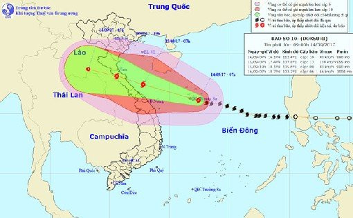 Theo bản tin cập nhật, hồi 16h ngày 14/9, vị trí tâm bão ở vào khoảng 16,6 độ Vĩ Bắc; 110,7 độ Kinh Đông, cách bờ biển các tỉnh từ Hà Tĩnh đến Quảng Bình khoảng 470km về phía Đông Đông Nam. Sức gió mạnh nhất ở vùng gần tâm bão mạnh cấp 12 (115 đến 135 km/giờ), giật cấp 15.