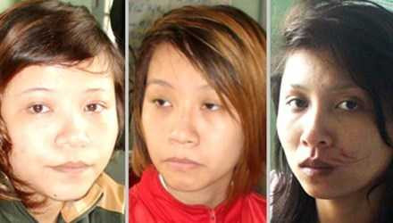 | Các đối tượng Hà, Hạnh, Trinh tại cơ quan công an huyện Thống Nhất |