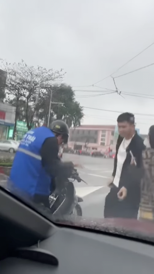 Va chạm giao thông, người đàn ông đấm đá túi bụi nam thanh niên giữa đường
