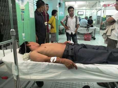 | Hai thợ hồ đang cấp cứu tại bệnh viện Đa khoa huyện Hóc Môn |