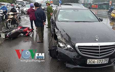 Theo đó, vào khoảng 7h ngày 6/11, hai xe ô tô lần lượt mang BKS: 30A - 17275 và 29A - 686 42 đang lưu thông trên đường Trần Thái Tông (quận Cầu Giấy, Hà Nội), khi còn cách ngã tư giao cắt với phố Duy Tân khoảng 150m theo hướng đi Trung Kính thì bất ngờ xảy ra va chạm với nhau rồi liên tiếp húc vào 3 xe máy khác.