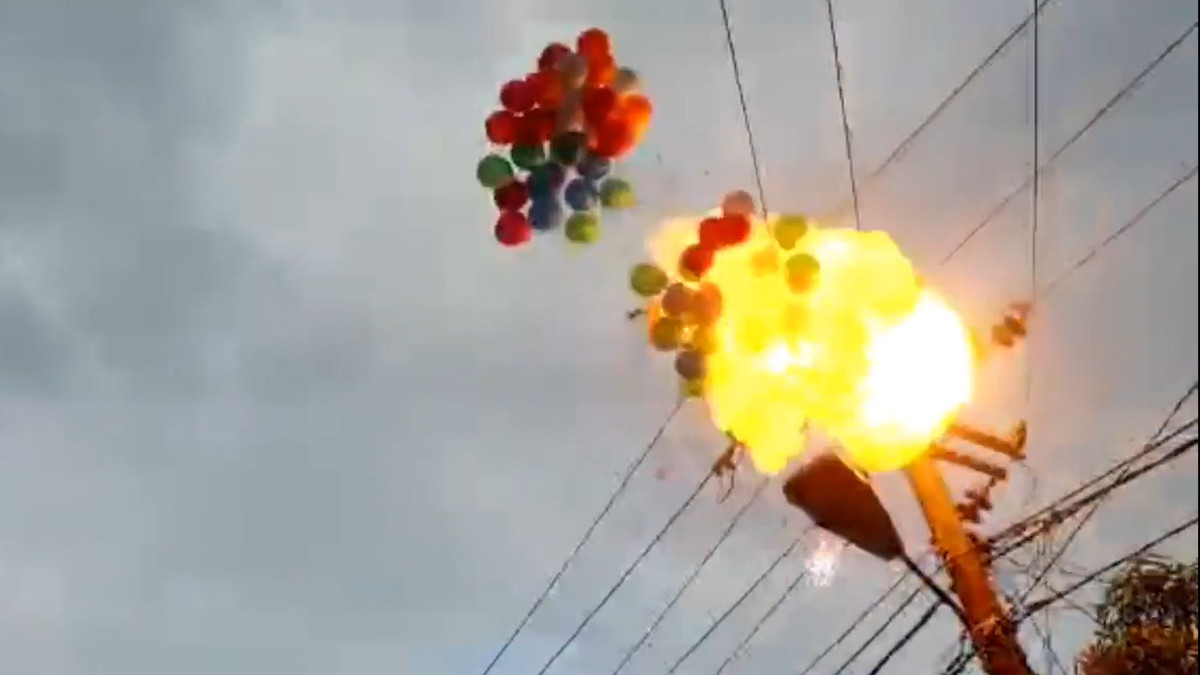 Va chạm vào đường dây điện, bong bóng bay phát nổ