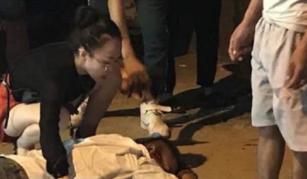 Nhân chứng tại hiện trường cho biết, lái xe taxi rất nguy kịch, được vợ và người dân đưa đi cấp cứu.