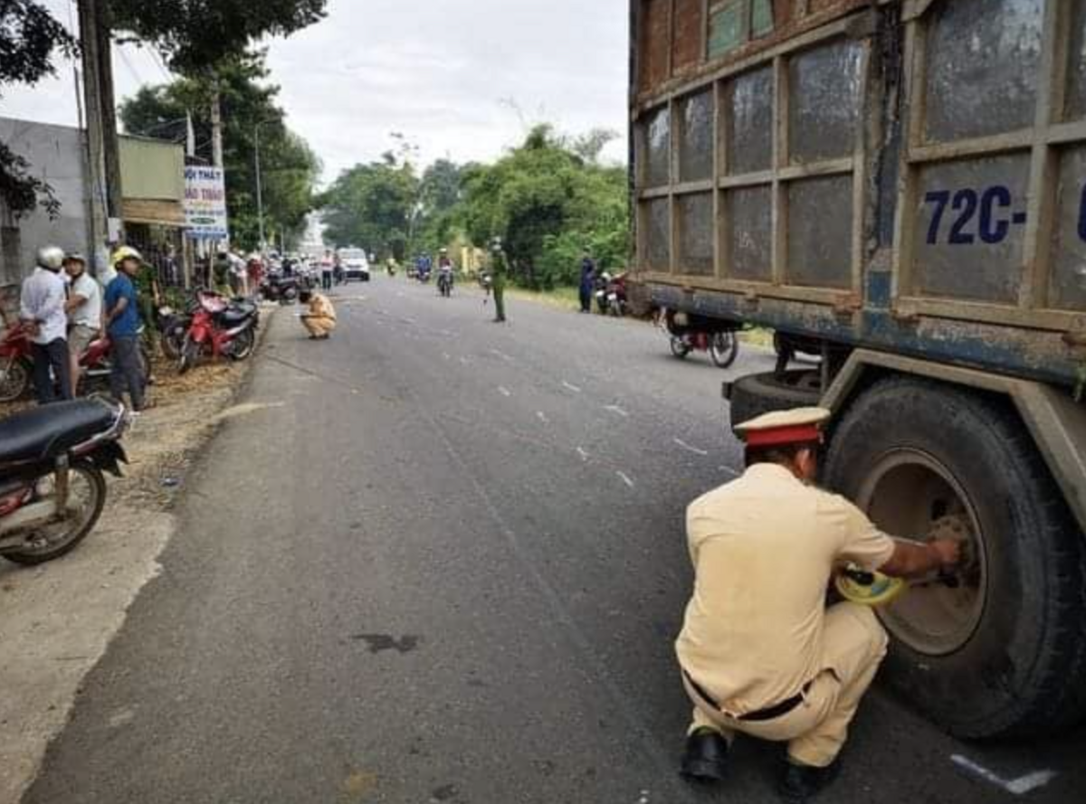 Sau va chạm, hai nữ sinh ngã ra đường và bị xe tải này cán chết tại chỗ.