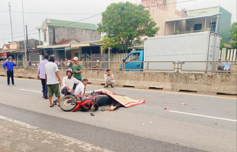 Trên đường đi, xe máy do anh L. cầm lái bất ngờ va chạm với xe tải khiến hai cha con ngã nhào ra đường. Đúng lúc này, một xe container (chưa rõ biển số) tông thẳng vào anh L. và cháu P. khiến cả hai thiệt mạng.