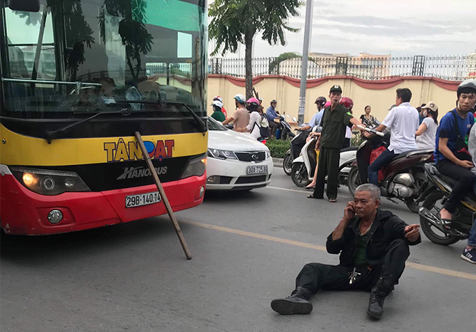 Va chạm xe buýt, lái xe ba gác lăn ra đất 'ăn vạ' giữa đường Thủ đô