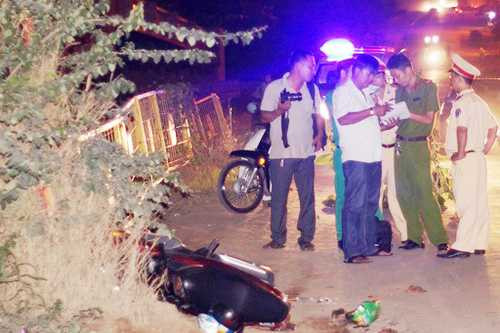 | Tai nạn khiến xe máy của anh Kim văng vào lề đường, vợ con anh chết tại chỗ. Ảnh: Nguyệt Triều |