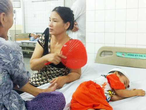 | Bé Lam Trường với cha bị thương đang được cấp cứu tại bệnh viện. Ảnh: Nguyệt Triều |