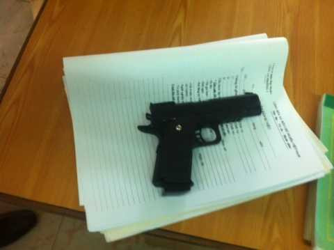 Khẩu súng ngắn mà Dốp dùng để đe dọa người tài xế taxi và Trung tá Công an (Ảnh: N.D)