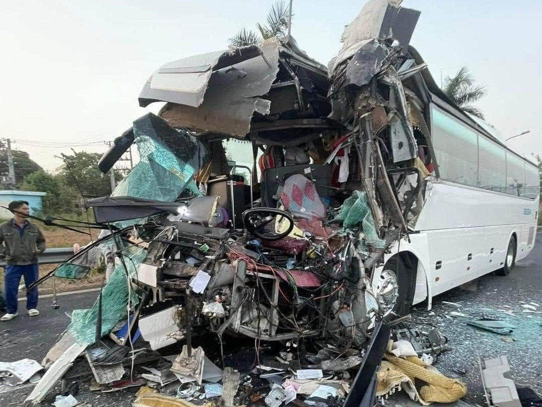 Theo thông tin ban đầu, khoảng 6h cùng ngày, trên đường dẫn vào trạm dừng nghỉ cao tốc TP.HCM - Long Thành - Dầu Giây (hướng từ TP.HCM đi Đồng Nai), xe khách (chưa rõ BKS) bất ngờ tông mạnh vào xe đầu kéo rơ-moóc BKS 29R-063.05 chạy cùng chiều phía trước.
