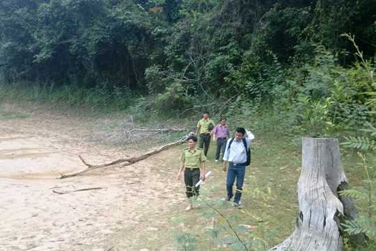 | Cán bộ kiểm lâm Vườn Quốc gia Bến En (Thanh Hóa) trong một lần đi kiểm tra rừng |