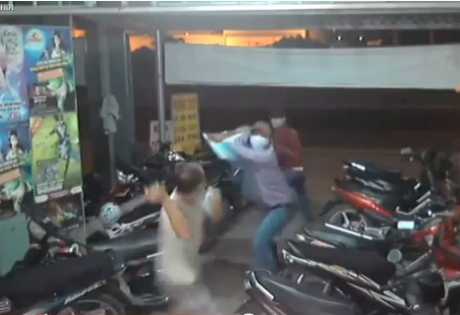 Hai tên cướp bịt kín mặt, mang theo mã tấu vào tiệm Internet định cướp tiền nhưng "đụng" ngay phải lính đặc công nên bị đánh 1 trận tơi bời.