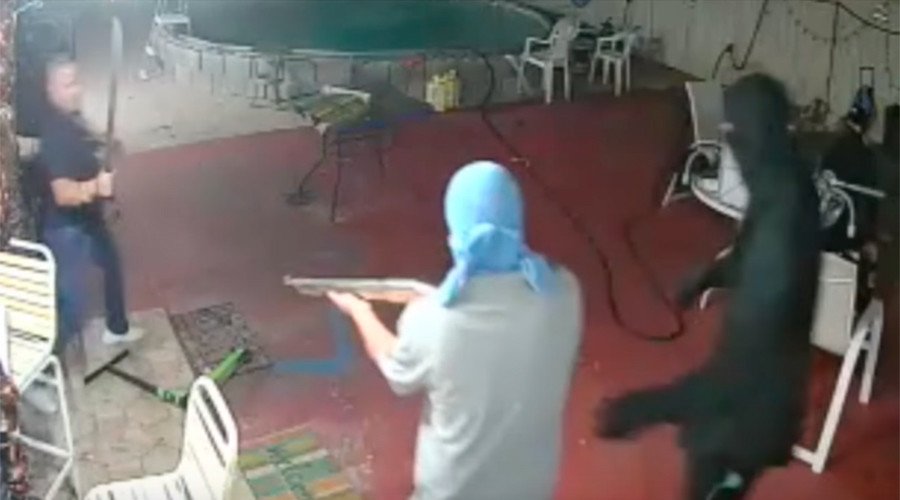 Video: Toán cướp cầm súng bị chủ nhà dùng mã tấu truy đuổi