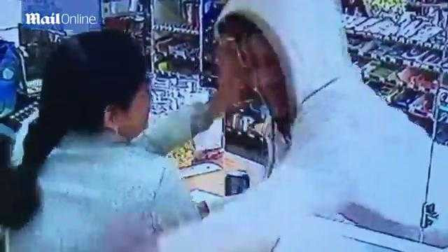Trang Daily Mail đăng tải đoạn video cho thấy cảnh một tên cướp vào tiệm tạp hóa giả vờ mua đồ ở bang Georgia (Hoa Kỳ). Sau khi mang đống đồ ra thanh toán, tên này bất ngờ chĩa súng vào cô chủ hàng có tên Bhumika Patel rồi đe dọa và cướp tiền.