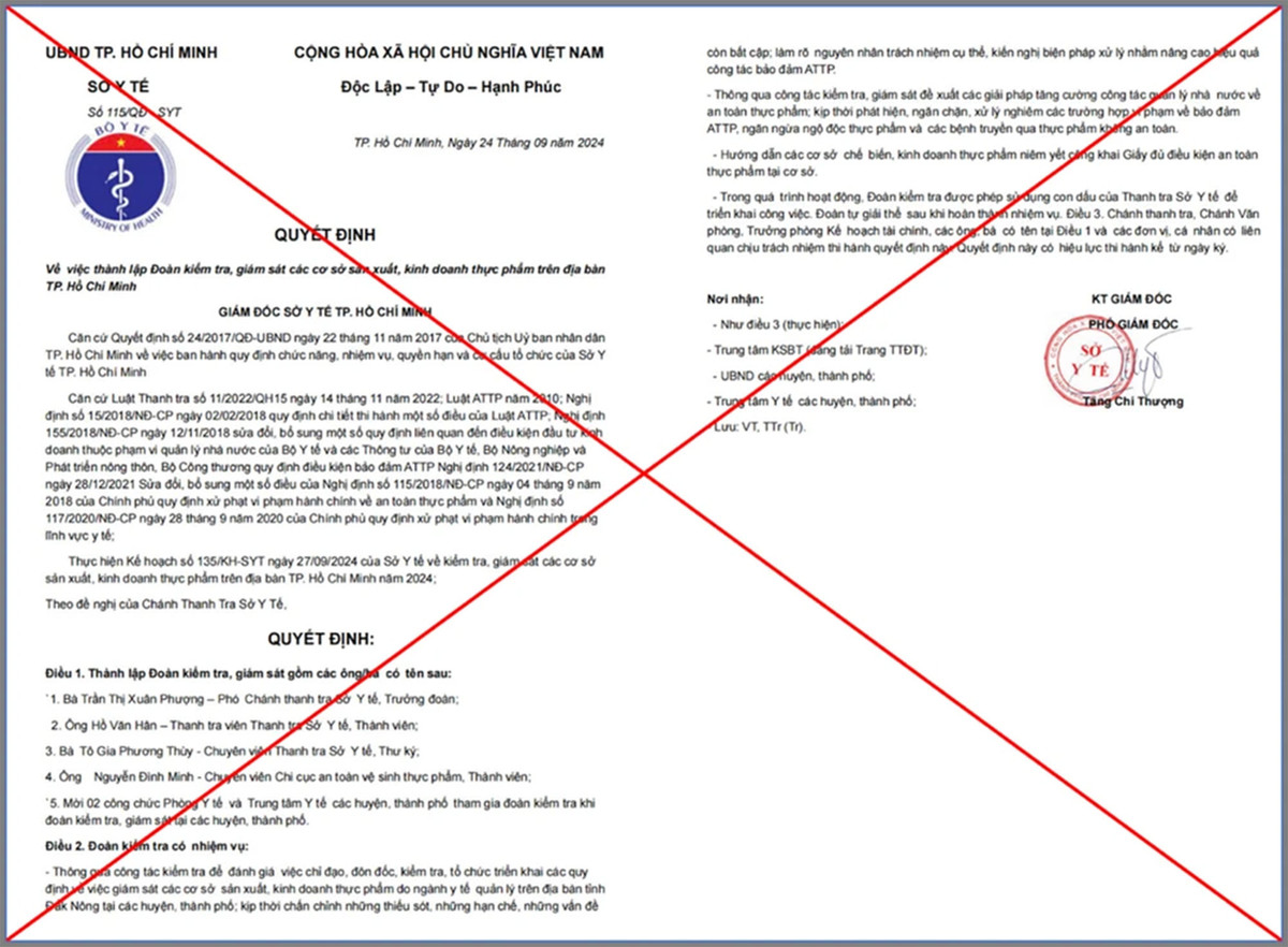 Sau khi kết bạn trên Zalo, kẻ lừa đảo gửi các hình ảnh giả mạo, có nội dung tương tự như văn bản của cơ quan Nhà nước, thông báo về việc thành lập Đoàn kiểm tra của Sở Y tế. Tuy nhiên, các hình ảnh này chứa nhiều lỗi văn bản và thông tin sai lệch về chức danh người ký. Từ đó, đối tượng lợi dụng tâm lý hoang mang của nạn nhân để gây áp lực và đe dọa, yêu cầu chuyển tiền nhằm chiếm đoạt tài sản.