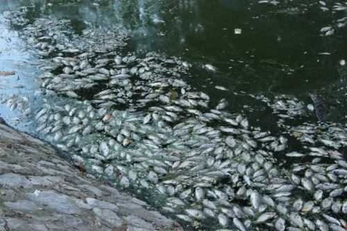 | Khoảng gần 1 tuần nay, cá chết nổi trắng hồ Thiền Quang |