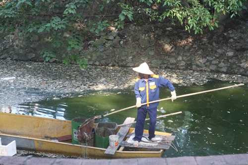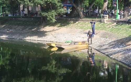 Xí nghiệp thoát nước số 3 (Công ty TNHH một thành viên thoát nước Hà Nội) đã phải tăng cường thêm người để với xác cá, vệ sinh mặt hồ.
