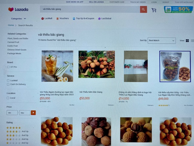Ngoài sàn Sendo, Voso, vải Thanh Hà cũng đang được bán trên sàn thương mại điện tử Lazada. Theo đánh giá, vải thiều Thanh Hà bán qua sàn Lazada rất tốt, đơn đặt hàng nhiều hơn mong đợi của chủ sàn Ladaza.