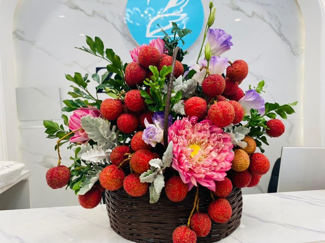 Không chỉ đơn thuần là những túi vải, nhóm thiện nguyện còn sắp xếp các quả vải thành các lãng hoa.