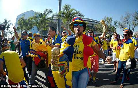 2h02: Ecuador rất muốn lọt vào vòng 1/8 để hoàn tất sự thành công của Nam Mỹ tại vòng bảng. Tính đến thời điểm này đã có 5/6 đội bóng Nam Mỹ đi tiếp là Brazil (bảng A), Chile (bảng B), Colombia (bảng C), Uruguay (bảng D), Argentina (bảng F)