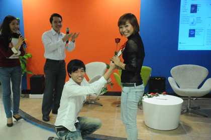 Sau màn thổi nến chúc mừng sinh nhật là những hoạt động gắn kết các bạn học viên VTCA với nhau và giao lưu giữa các bạn học viên VTC Academy với sinh viên các trường Arena Multimedia, Cao đẳng Sư Phạm Trung Ương, Học viện Ngân hàng, Trường ĐH Kinh tế kỹ thuật Công nghiệp, Đại học Kinh doanh Công nghệ, Đại học thương mại… Đại diện của sinh viên trường ngoài, bạn Lê Trần Đắc Ngọc – Đại học Kinh tế kỹ thuật Công nghiệp lên chia sẻ và gửi tới các bạn những lời chúc ý nghĩa trong đêm Valentine.