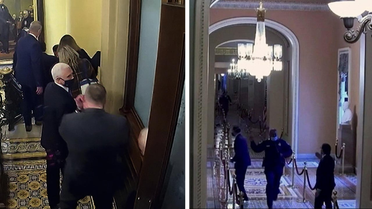 Dù vậy, các đoạn video từ điện Capitol lại cho thấy ở một số thời điểm những kẻ quá khích đã cố tiến tới gần vị trí của Phó Tổng thống Pence và đoàn cố vấn, hai bên chỉ cách nhau chưa tới 20m, họ cũng đồng loạt hô vang khẩu hiệu “Treo Mike Pence lên”. Bên ngoài là một giá treo cổ đã được dựng sẵn.