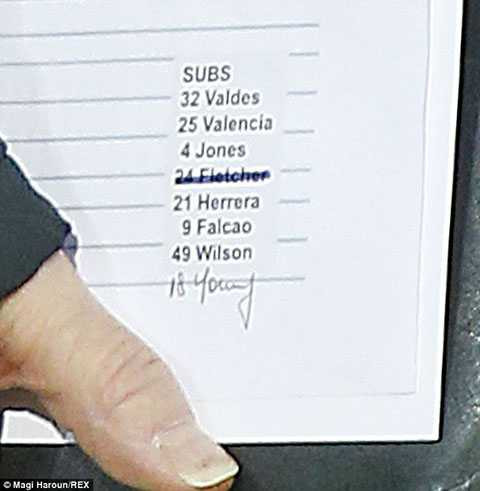 Trong danh sách dự bị của Man Utd được Van Gaal ghi chép trong cuốn sổ của ông, tờ Daily Mail tiết lộ rằng tên của đội phó Man Utd vẫn xuất hiện ở vị trí dự bị thứ 4, sau Valdes, Valencia và Jones. Mãi cho đến sát giờ thi đấu, ông thầy người Hà Lan mới được nhắc về việc này.