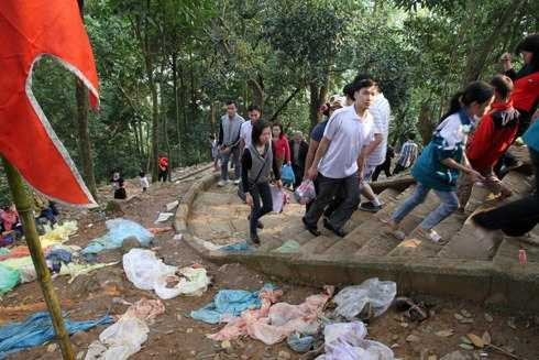 | Đường lên Đền Hùng ngập đầy rác trong mùa lễ hội. (Ảnh: VNE) |