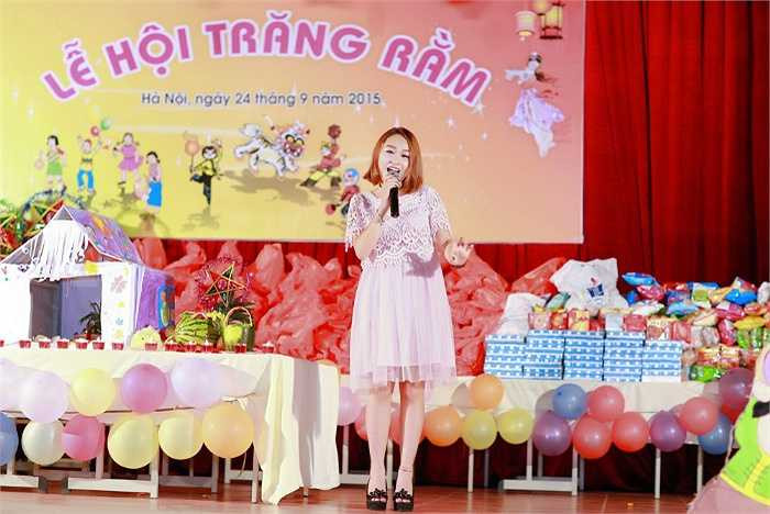 Nữ MC xinh đẹp đã có cuộc hội ngộ với con gái Thanh Lam trong chương trình từ thiện Đêm hội trăng rằm tại trường Khiếm thị Nguyễn Đình Chiểu, Hà Nội.