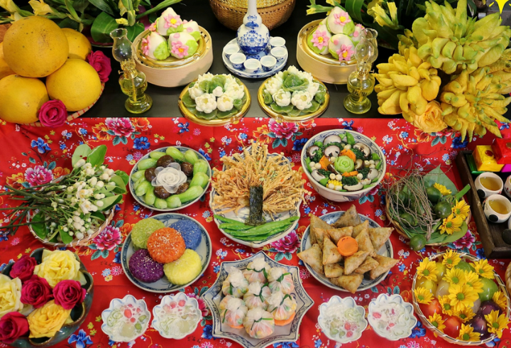 Ngoài ra, gia chủ cũng có thể dâng mâm lễ mặn với các món quen thuộc như thịt luộc, xôi, rượu,... cùng hương, hoa và trái cây. Mỗi món dâng lễ đều mang theo thông điệp tri ân và lời cầu nguyện cho sự an lành, hạnh phúc và phúc lộc đến với gia đình.