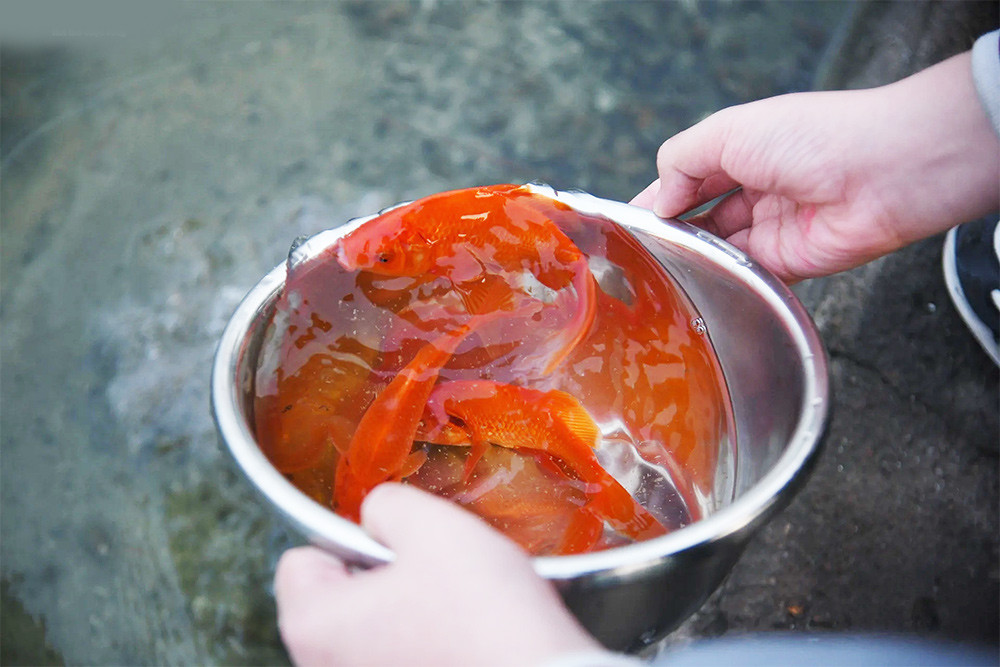Không nên dùng tay chạm vào cá vì có thể làm mất lớp nhầy trên vảy cá, sẽ khiến cá dễ bị nhiễm trùng và chết.