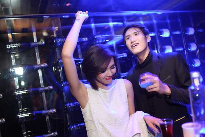 Đây cũng là lần đầu tiên cả hai cùng nhau xuất hiện riêng trong một đêm tiệc sau lùm xùm yêu đương tại nhà chung chương trình Vietnam's Next Top Model 2013.