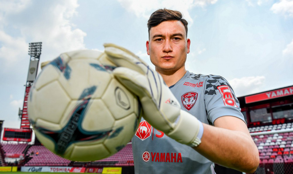 Văn Lâm có thể hình đồ sộ, vượt trội so với chính những thủ môn ở Thai League. (Ảnh: Muangthong United)