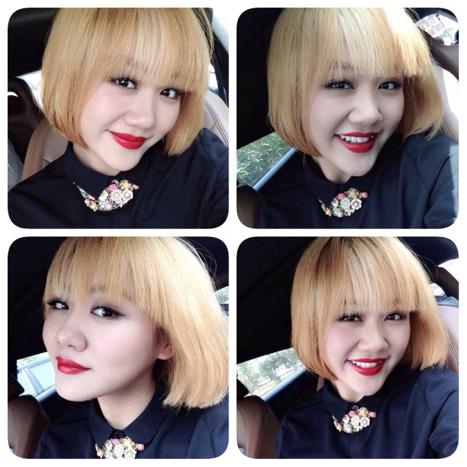 Cô nàng lại cắt phăng mái tóc dài mới nhuộm từ màu đen sang vàng rực.