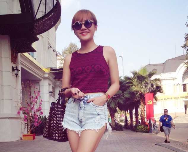 Chiếc áo crop top được Văn Mai Hương kết hợp cùng short ngắn, rách te tua.