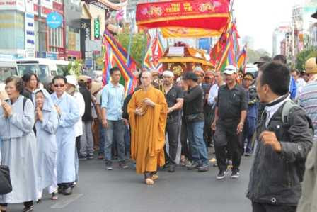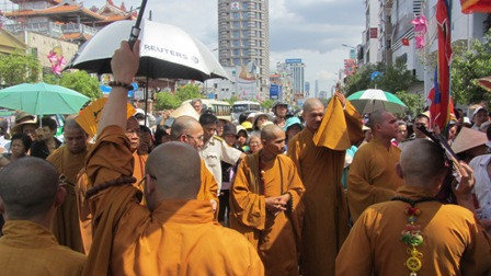 | Các sư thầy ra hiệu lễ truy điệu bắt đầu |