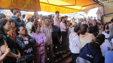 Mặc dù đến 14h lễ truy điệu gia đình ông Lê Thanh Phương (biệt danh Phương “khói lửa”) mới diễn ra, tuy nhiên từ sáng đã có rất nhiều người thân, bạn bè đồng nghiệp kéo đến nhà tang lễ chùa Vĩnh Nghiêm.