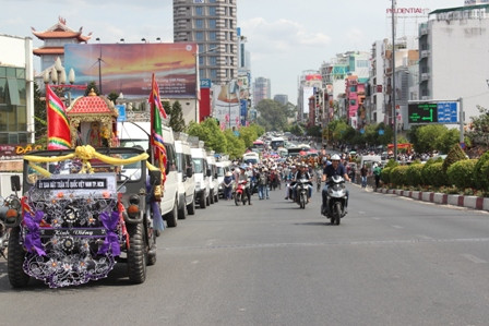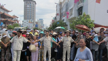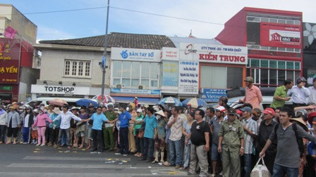 Dọc tuyến đường Nam Kỳ Khởi Nghĩa (đoạn gần chùa Vĩnh Nghiêm) đông đảo người dân tập trung bên đường chứng kiến “6 xe tang lầm lũi” tiễn đưa 6 con người xấu số về với đất mẹ.