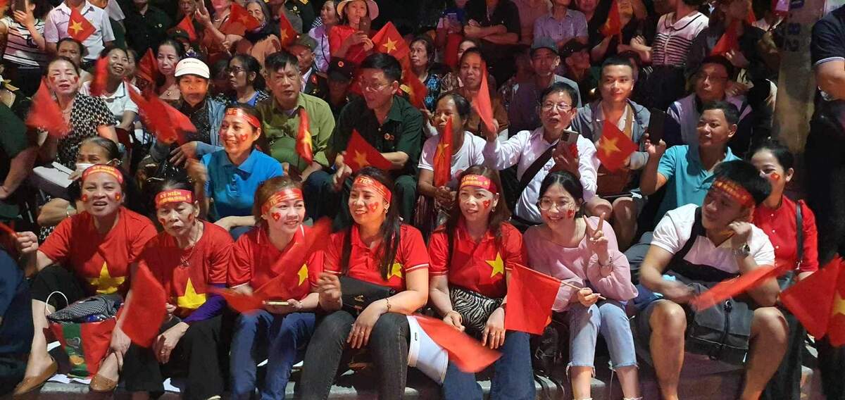 Ngồi trên vỉa hè chật kín người lúc 5h sáng, ông An chỉ tay lên chiếc áo cờ đỏ sao vàng đang mặc, nói: "Vui mừng, tự hào là cảm xúc của tôi và đông đảo bà con Nhân dân đang có mặt tại đây để sống trong ngày hội của non sông đất nước".