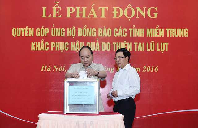 Thủ tướng và các Phó Thủ tướng đóng góp ủng hộ đồng bào miền Trung - Ảnh: Hiếu Nguyễn.