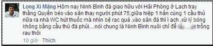 Trong trận đấu này, Văn Quyến ngồi dự bị. Khoảng giữa hiệp 1, “thằng béo” cùng với một cầu thủ khác của Ninh Bình bị khán giả bắt gặp đang hút thuốc ở nhà vệ sinh. Hình ảnh cậu bé vàng một thưở của bóng đá Việt Nam hút thuốc được vị khán giả nọ phàn nàn là “nhìn bệ rạc quá”.