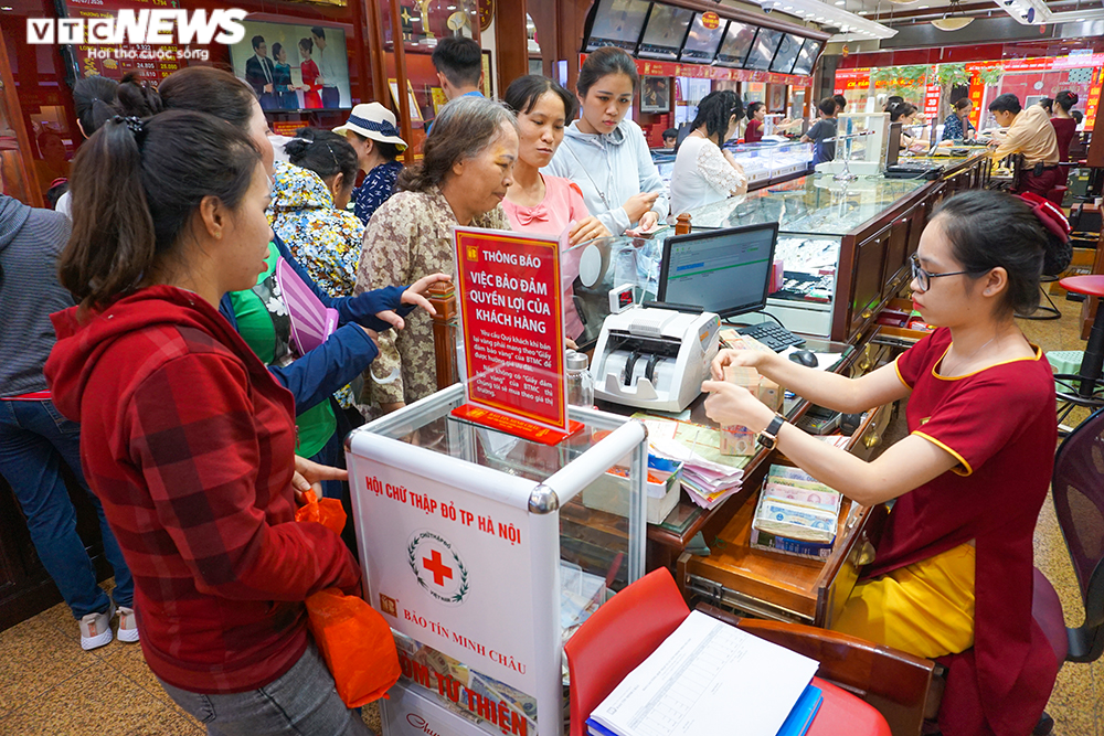 Theo ghi nhận của PV VTC News, khu vực thu mua vàng của nhiều cửa hàng luôn trong tình trạng đông đúc, lượng khách đến bán tăng cao hơn mọi ngày.