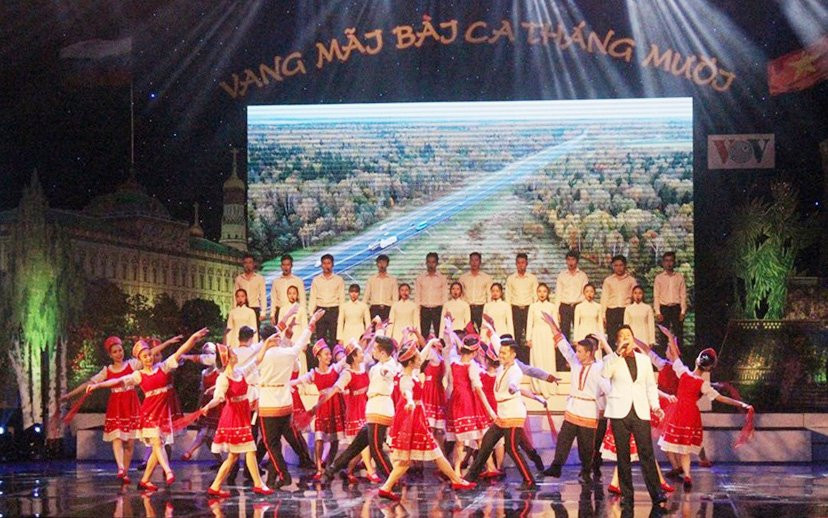 Đêm nghệ thuật diễn ra tại Cung Văn hóa Hữu nghị Việt-Xô (Hà Nội) đã thu hút đông đảo khán giả tới xem. Đây là hoạt động nhằm kỷ niệm 100 năm Cách mạng tháng Mười Nga và nêu bật ảnh hưởng sâu sắc của sự kiện mang tầm vóc nhân loại đối với cách mạng Việt Nam.