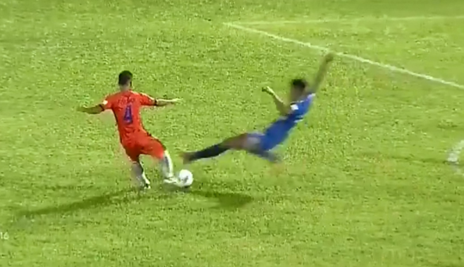 Trước đó, ở phút 90+6 trong trận đấu giữa Than Quảng Ninh với SHB.Đà Nẵng diễn ra trên sân Cẩm Phả tối 10/7. Khi đó, đội chủ nhà đang dẫn 3-2 và cần tiếp tục phòng ngự để giữ vững tỷ số. Văn Học đuổi theo bóng trước vòng cấm trong một tình huống không quá nguy hiểm.