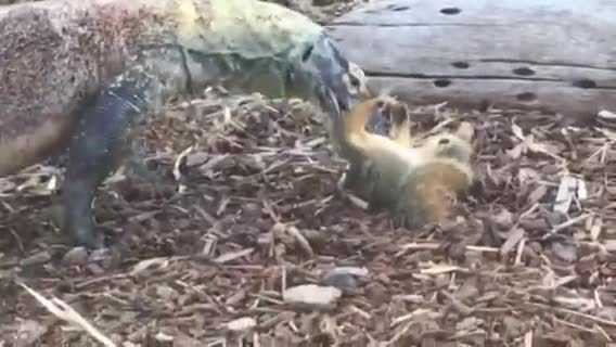Vô tình rơi vào lãnh địa của rồng Komodo trong sở thú San Diego (bang California, Mỹ), con sóc xấu số đã trở thành miếng mồi béo bở cho loài bò sát hung dữ.