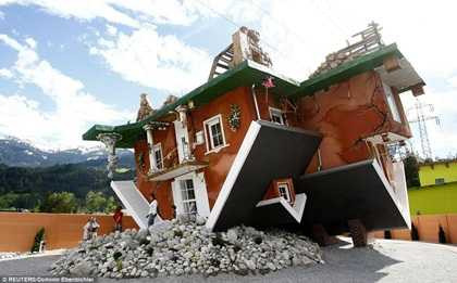 Thoạt nhìn, ngôi nhà này trông giống như bị “bật gốc” và rơi xuống lộn ngược bởi một cơn lốc xoáy dữ dội. Thực ra, đây là công trình xây dựng của hai kiến trúc sư Irek Glowacki và Marek Rozhanski, với mục đích thu hút du khách đến Terfens, nước Áo.